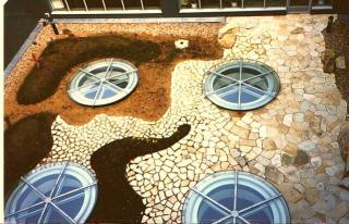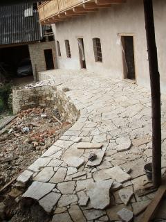 Kamenná dlažba z kamenů do tloušťky 5 cm se pokládá do betonu. Tato kamenná dlažba je vhodná pro interiér i exteriér. Venkovní dlažbu z větších kamenů, tloušťky 5 až 20 cm, je možné položit do štěrkového lože – dlažba je odolná, snese i zatížení osobním autem. Dlážděný kamenný chodník nebo kamenná cesta mohou být nenápadnou přirozenou součástí zahrady, reprezentativní příjezdovou cestou i originálním designovým prvkem. Záleží na výběru kamene a architektonickém záměru – lze kombinovat i různé druhy kamene, skládat kamenné mozaiky.